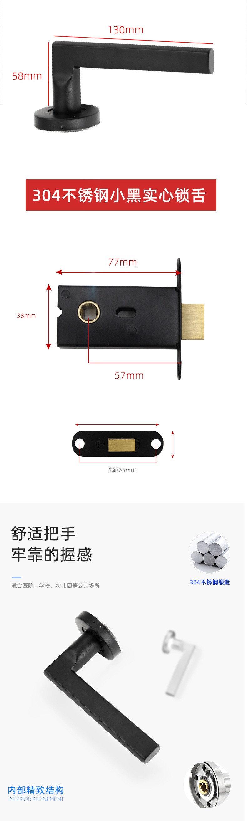 RST-07 不锈钢304美式室内门单面暗门锁
