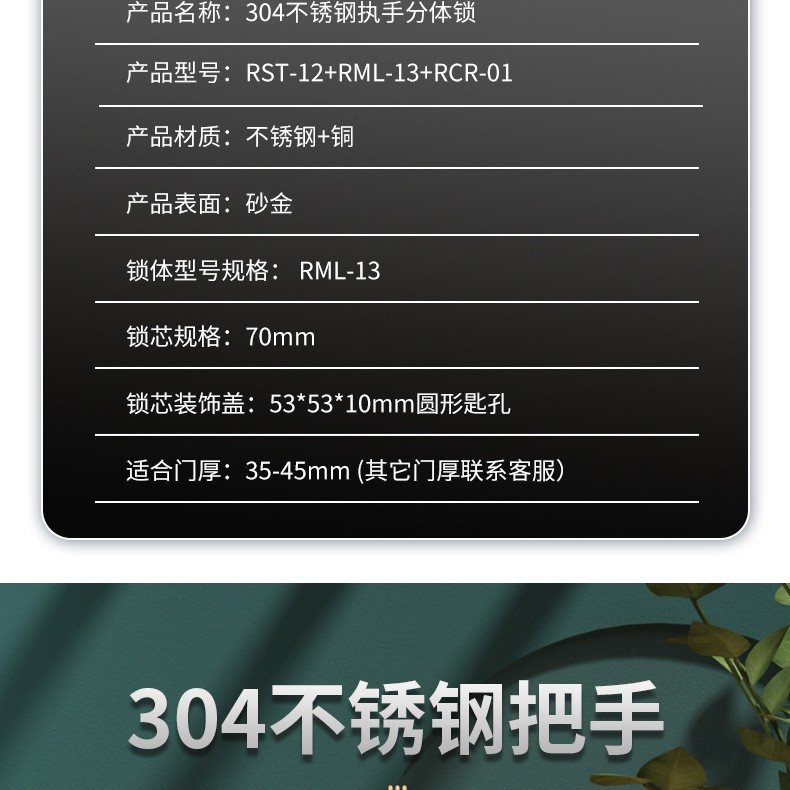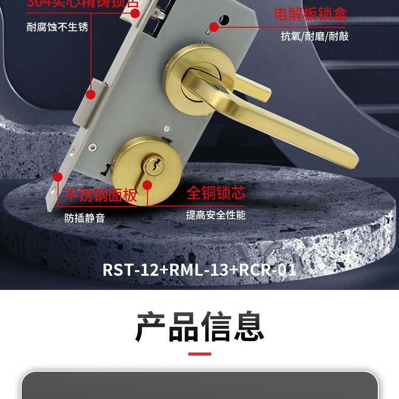 RST-12 金色不锈钢304分体把手门锁