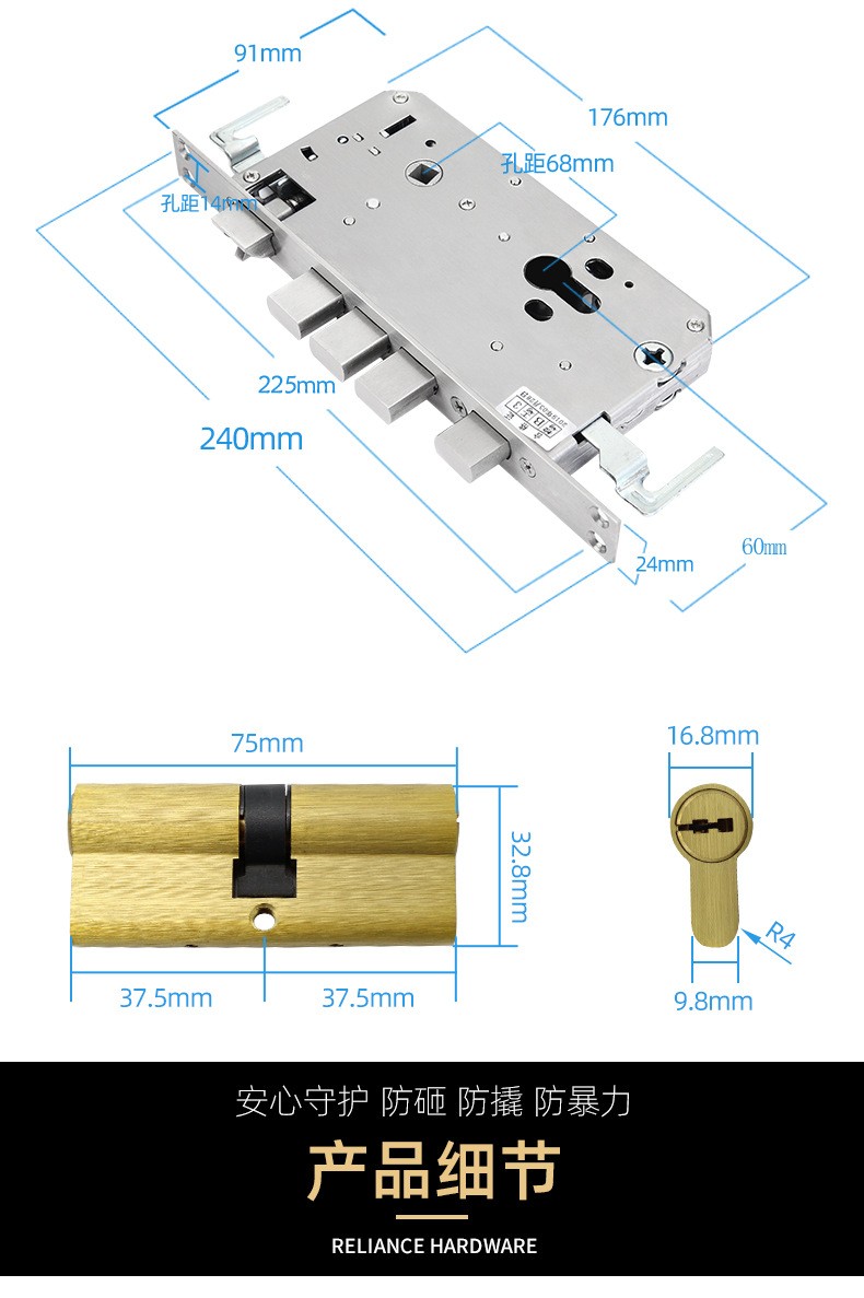 RXL-06-03 不锈钢加厚面板大门锁