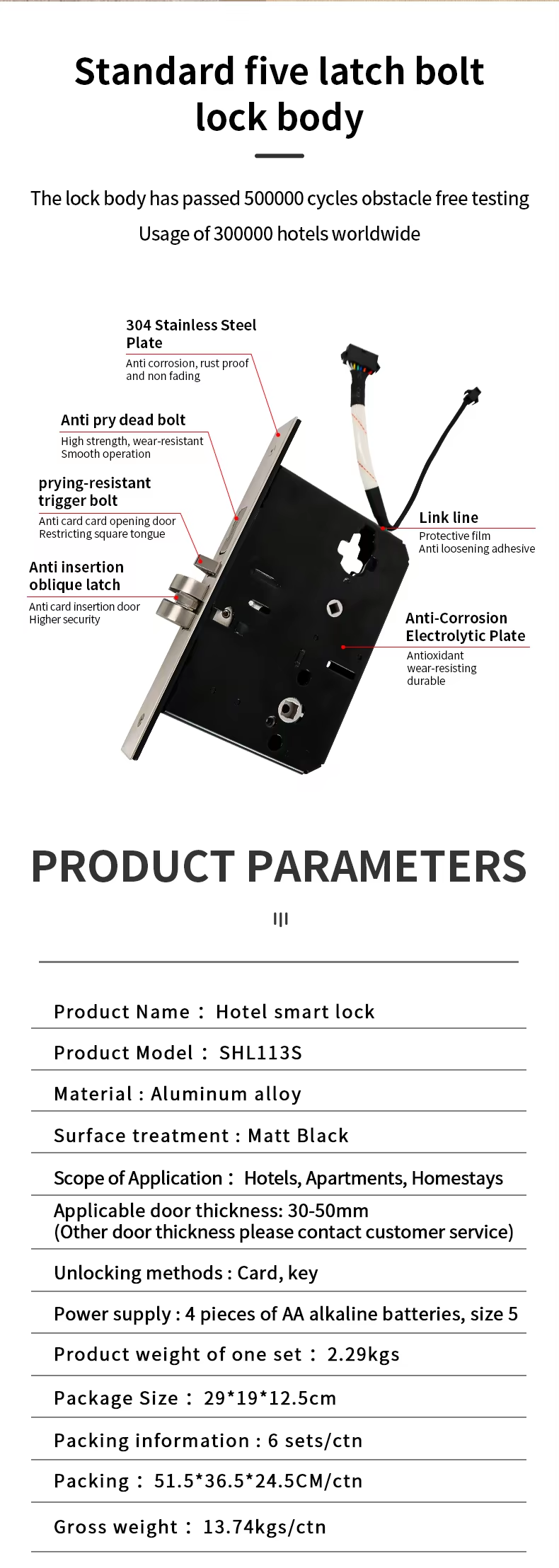 SHL-113S Hotel Room Door Split Black Smart Lock