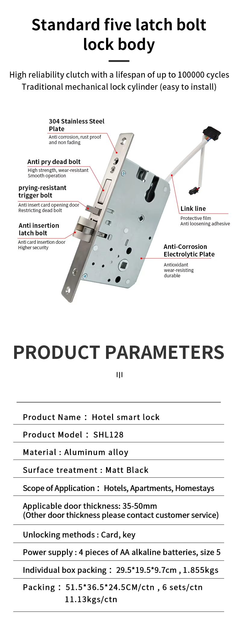 SHL-128 Aluminium Alloy Split Type Hotel Managerial System IC Card Lock